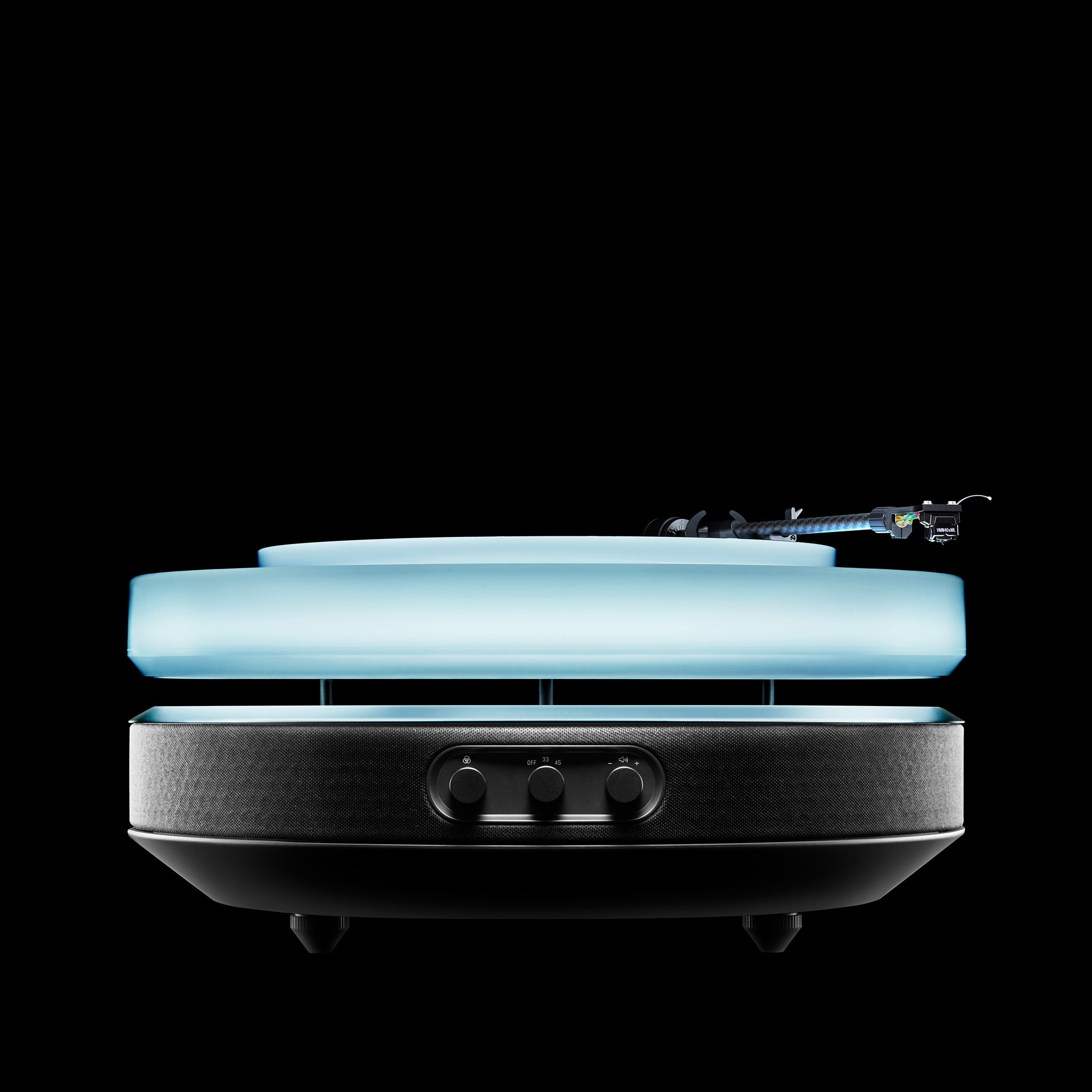 Record floating concept with a magnetic repulsion system to suppress vibrations and preserve seamless sound quality.