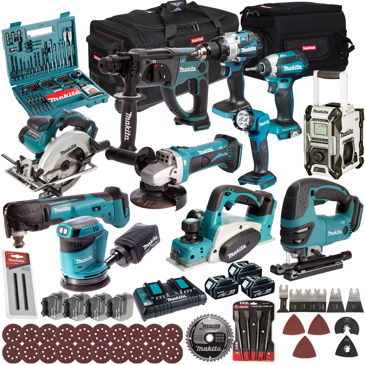 Makita 18V 11 Piece Combo Kit with 3 x 5.0Ah Battery Charger & Accessories Set T4TKIT-17224